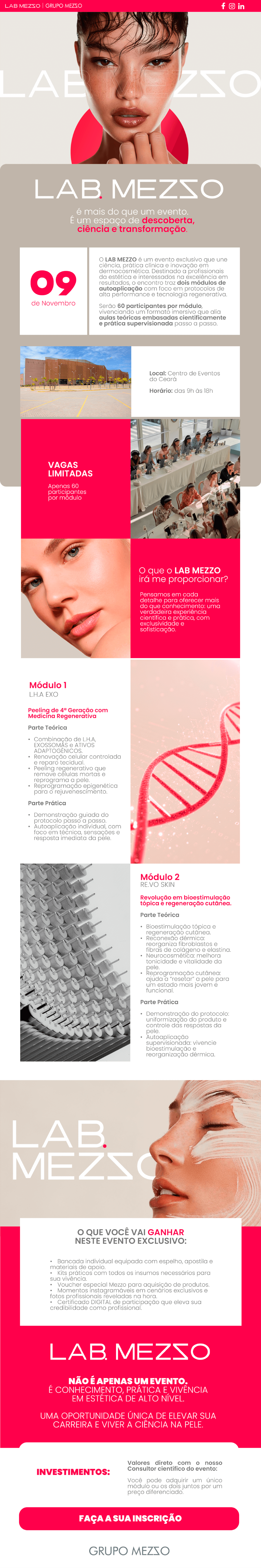 O evento reunirá profissionais, estudantes e investidores do segmento de ESTÉTICA, BELEZA e BEM ESTAR, com o objetivo de reciclagem de conhecimentos. As mais conceituadas marcas de produtos e serviços se farão presentes, apresentando seus lançamentos e tendências mercadológicas. Os mais renomados experts do setor, estarão reunidos apresentando congressos, simpósios e cursos aos interessados.